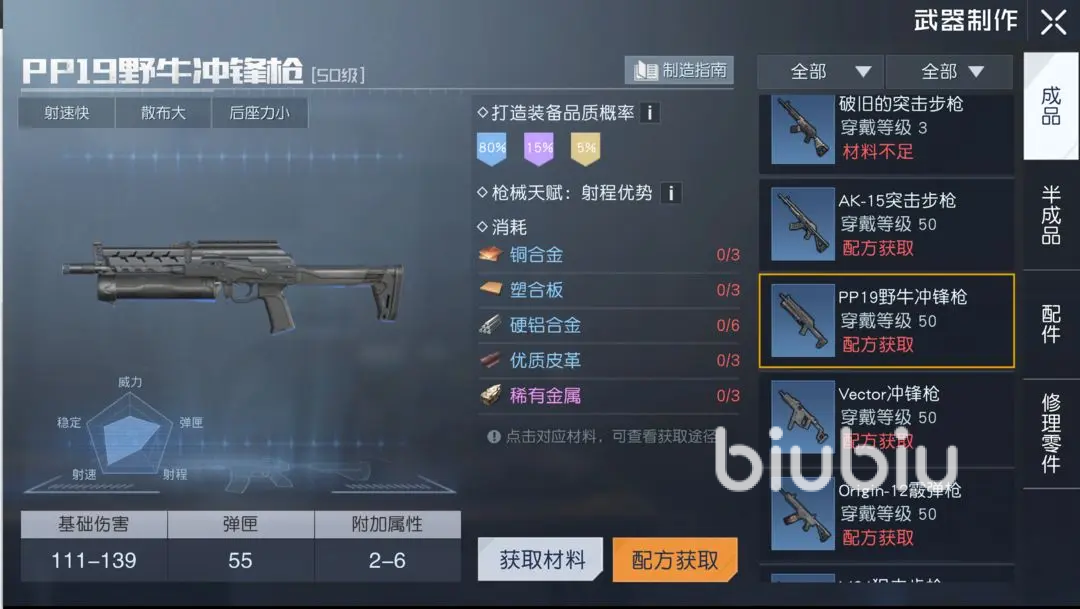 8、PP19野牛冲锋枪:在同类型武器当中伤害是最高的,其他能力中规中矩。
