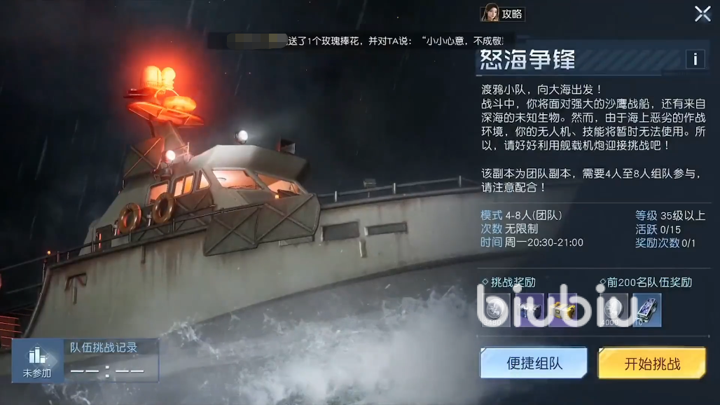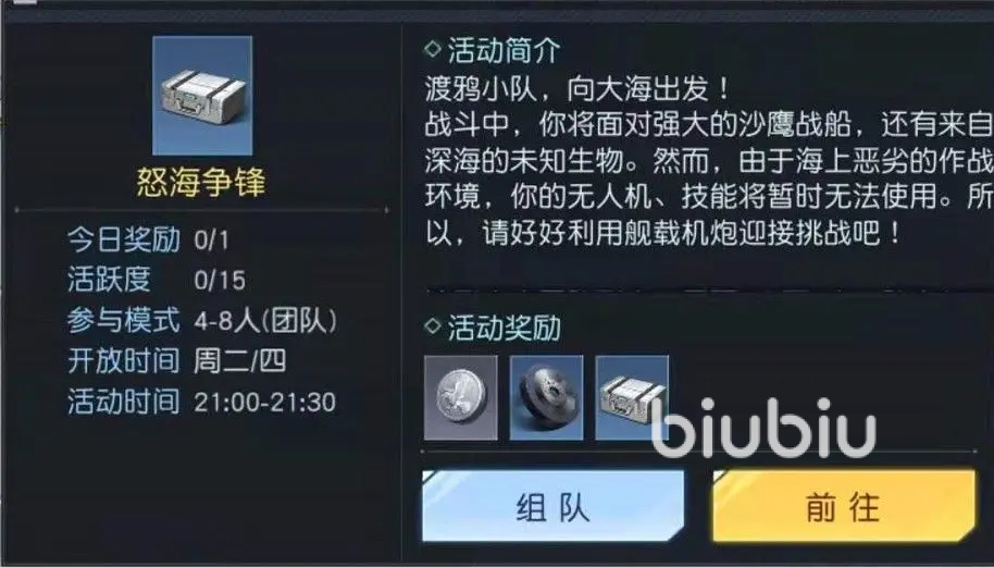 1、目前这个玩法的开放时间为晚上8点30,玩家可以选择和小伙件一起组队,或者自己随机匹配都是可以的。大家最好能提前组好队伍,这样等到八点半这个时间一到,大家就可以点立即前往了。在进入这个游戏副本后,可以看到在码头的位置有一个弹药箱。大家可以拾取一些备弹,当然不去拿的话也是没问题的,因为之后在登船后船上还有一个备弹箱在的。