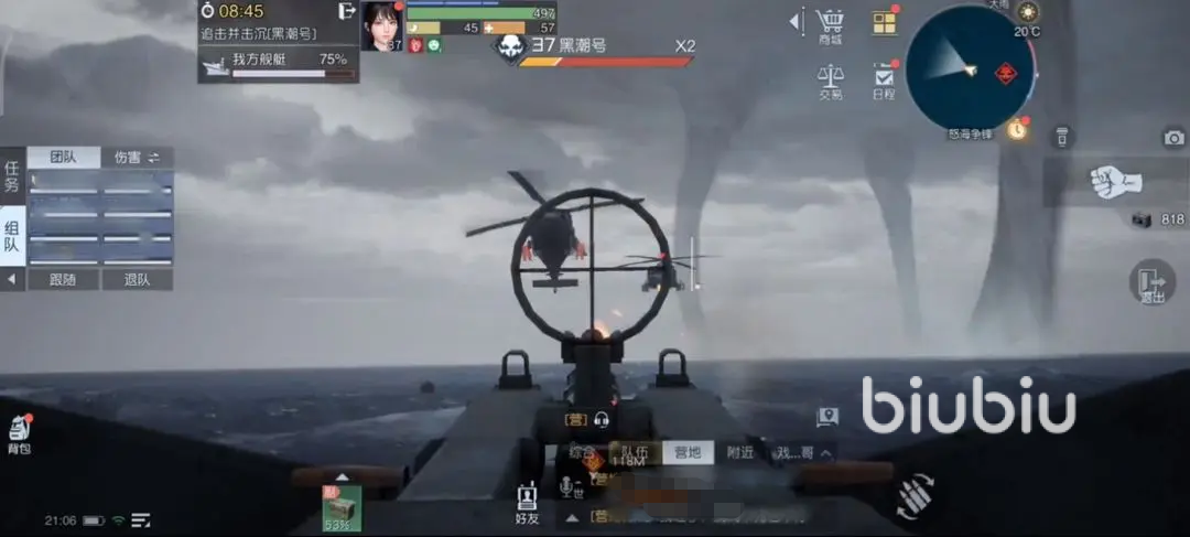 2、大家登船之后就需要考验一下手速了,因为上船目前只有三个职位,两个机枪手一个驾驶员。没有抢到位置的玩家呢就只能使用普通的步枪了。如果是驾驶员职位的话,那么大家在驾驶员的时候,就一定要注意海面上会有很多水雷。如果你是机枪手的话,那么就需要负责队伍的主力输出了,因为这把武器的射速的非常快而且威力也非常的大,因为尽量不要打中敌人,毕竟剩下玩家的步枪伤害是很有限的。这个船上的机枪几平是没有后坐力的,可以很大程度提升队伍的输出效率,不过这个枪也还是有缺点在的,他的旋转角度不能转的太大,他是有规定角度在的的。