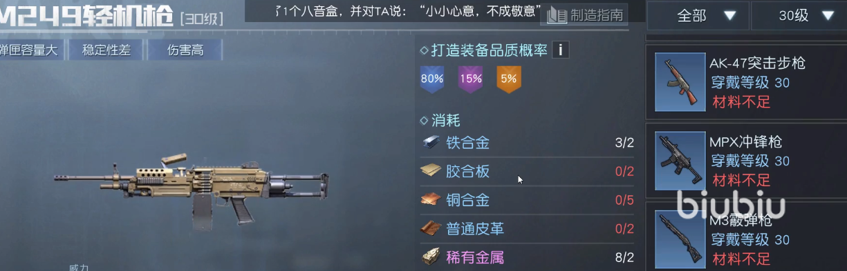 首先要给大家说的就是游戏中的装备品质,在这款游戏中装备一共分为了三个品质,分别为蓝色、紫色和金色,其中金色是最高级男色是最低级,这些不同品质的装备会在属性上和词缀上有差别,这里就那散弹枪给大家举一个例子。