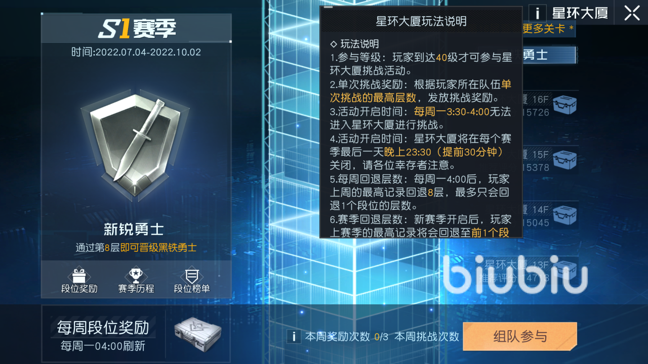 2023年03月07日 17:23 来源:神速中猫老大3当前这款别具特色的游戏已经可以游玩了,大家在其中都有体验到哪些内容呢,此处的游玩系统比较丰富,而这里要介绍的是黎明觉醒星环大厦怎么玩,想必有玩家可能都没有听说过这个模式,它其实就类似于排位赛,不过这并不需要各位与其他玩家进行对战,这里就具体说明一下其中的玩法。