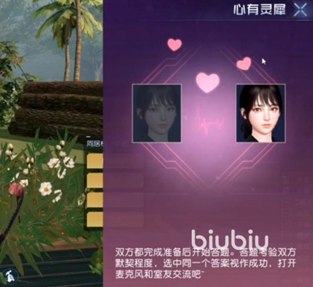 第3种方法则是官方给玩家创造的一种提升亲密度的方法就是心有灵犀的答题环节。玩家在共同准备开始游戏之后,选择出现问题的答案,双方选择答案相同就代表这个答案是做成功那么就可以不断的提升双方之间的亲密度。