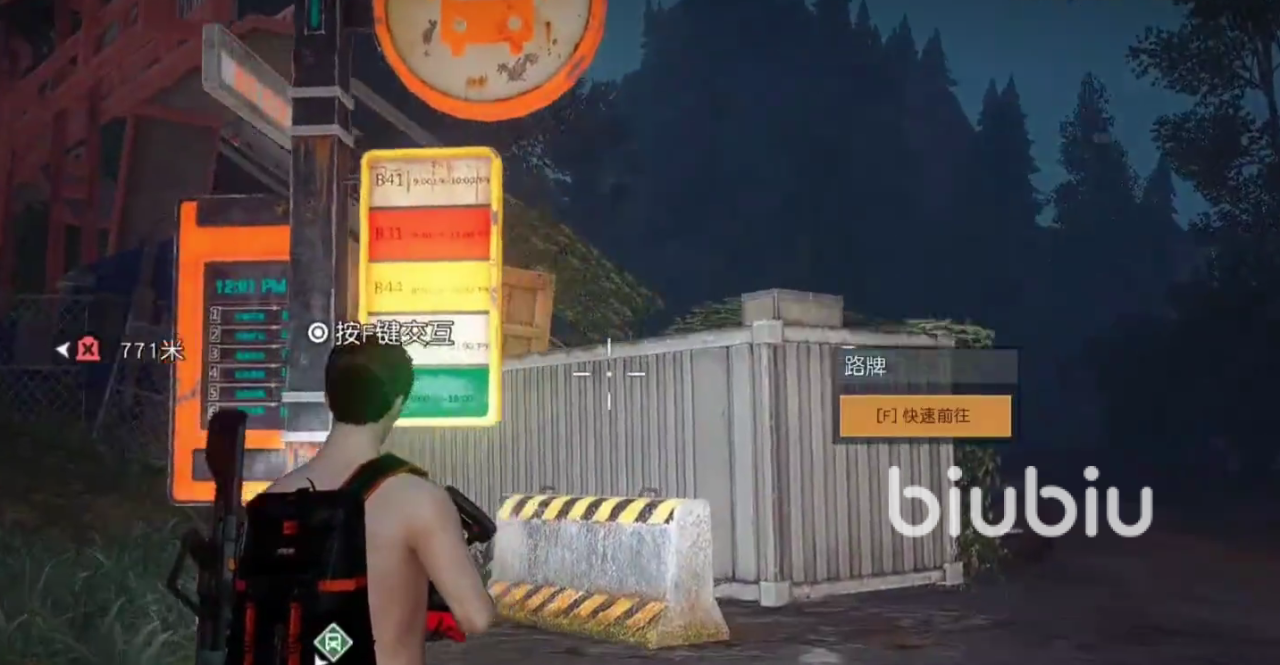 此外,那个翻窗进去的技巧的窗户旁边就有我们的宝箱,是一个军械箱,玩家们可以在这里拿到一定的物资。观测你的地图之后,就直接向地图的正南方走,开回大马路上,顺着马路继续往前开,来到农贸市场的路牌这里,然后面朝正西方向,可以看到一个很大的谷仓,这边有下一批次的宝箱。