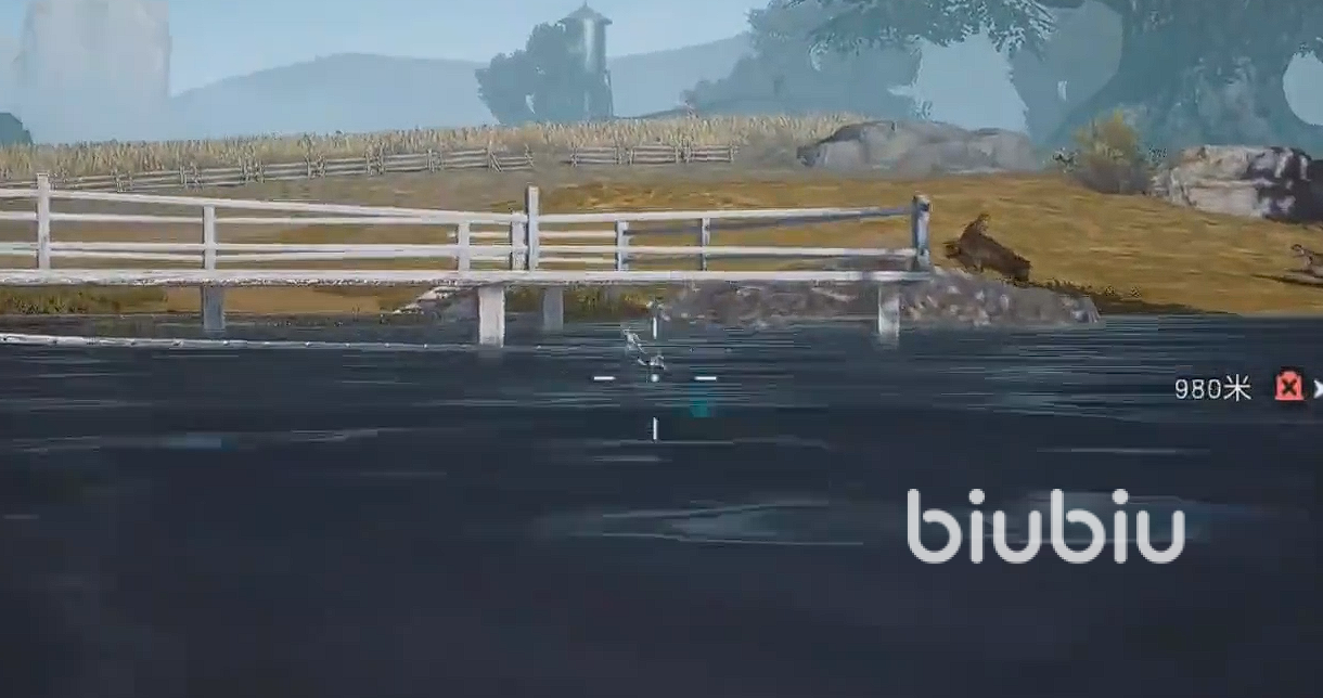 要注意的是,这里有一些小怪杂鱼,我们需要清完之后再去找宝箱。那仓库门口一直向左转,来到第二层,可以在旁边的货架上面看到我们的医疗箱。拿到之后,回到仓库门口,然后将视角转向我们的地图正东方向,回到马路上,顺着马路右拐往前走,到大马路的十字路口,向右拐,继续向地图的正南方向一直往下开就好,过河可以看到这边有一排白色的栏杆钓鱼台,在钓鱼台台下的水里,有一个宝箱。