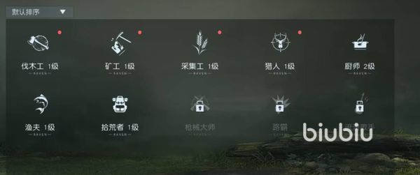 渔夫,拾荒者还有都是一级可以解锁的职业,难度非常低,而且非常有用,还有厨师这个职业需要大家等级达到2级才能解锁。