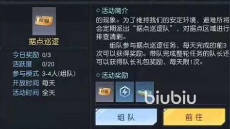 在之后是哨兵委托任务和据点巡逻任务,这个任务有前置条件那就是等级需要达到17级,所以在游戏刚开始的时候大家是做不了的,大家需要在游戏开始时花点时间做主线升到17级才能做,这个任务很简单没啥难度,但是给的经验却不少,大家只需要随机组一些队友然后完成委托任务里的搬运、防务、寻物和救援这几个任务,完成这些任务之后就能获得大量的经验,不仅如此还能获得不少天赋点和材料道具,据点巡逻任务,这个任务也需要组队完成,这个任务也是有前置要求的那就是等级需要达到16级这里建议大家是升到17级以后和哨兵委托一起做,这个任务难度也不是太高,就是打打小怪,一圈打下来就可以获得不少的经验,同样除了经验之外还能获取武器装备和天赋点,另外如果大家是队长的话还能获得一份队长专属礼包。