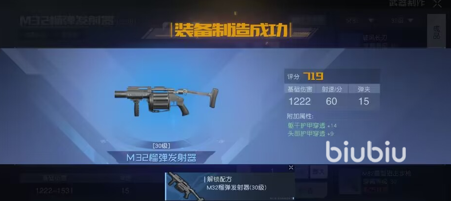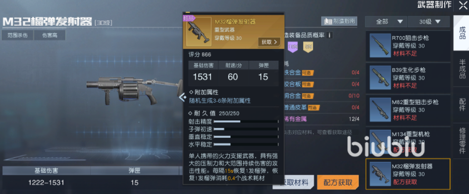 因此玩家如果在一次制造当中没有制造出比较好的m32,也可以多次选择制造,选择品阶最高的m32进行使用。使用m32的话,一定要知道不要用m32打突击战,m32换弹匣的速度非常慢,因此打防守战才是m32最好的选择。玩家在游戏中除了可以制造之外,还可以到交易所进行购买,不过在交易所中的武器一般价格都比较高,因此对于财大气粗的玩家来说还是直接购买为佳。因为收集材料还需要很多时间。平民玩家还是乖乖的选择制造,没准自己的运气比较好制造出来,m32的等级会很高!
