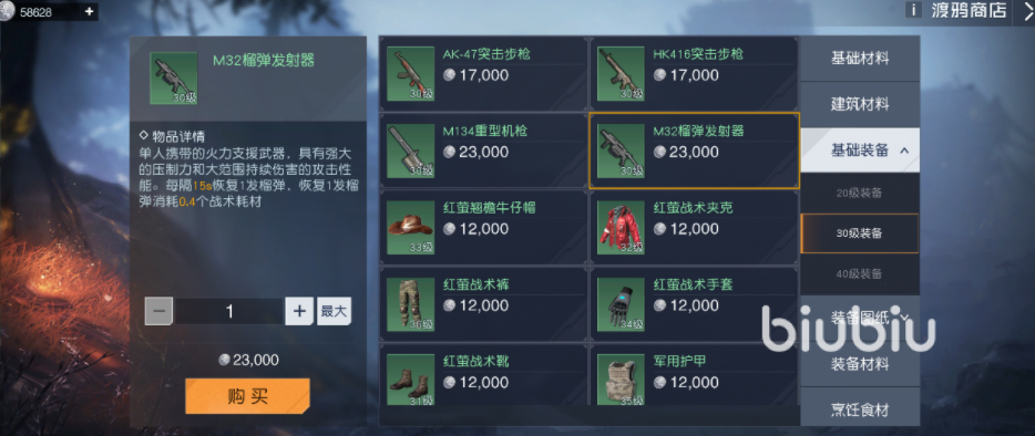 然后玩家要想拥有M32,一般都需要通过自己在游戏中创造出来,那么我们就要先准备好这把武器的图纸,才能创造出一把武器。玩家想要打造M32需要先去集市上购买这件武器的图纸,购买后看武器所需材料如何,准备好所需材料后即可开始制造。但是因为概率的不同导致玩家创造出来的武器品阶也不同,如果有概率出现橙色武器,那么就代表这把枪的实力是远远超出了最初的等级。
