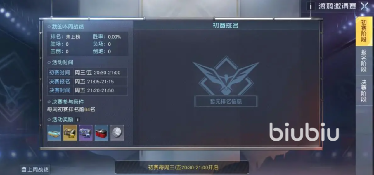 这个模式玩家们可以直接在界面的日程一栏中找到,又或者玩家们可以直接去营地找NPC进行报名。整个游戏除开报名以外,大致可以分为两个阶段,一个是淘汰赛制的初赛阶段,在每个星期三和星期五的晚上八点半开启,而且每天每人最多打五场,到时候会根据相应的比赛积分进行裁定,选出一定的名额去参加星期五晚上九点之后的决赛阶段。