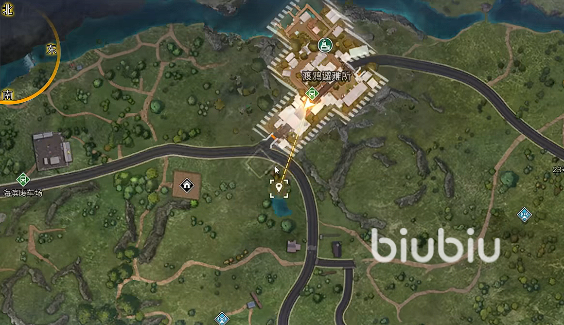 为了本次的流程能够更加快速的进行,建议各位玩家先传送到避难所为起点出发寻找。正门出发一直沿着马路前进,到了分岔口,一开马路向左前方的草地前进,可以找到一个池塘,然后围绕着池塘向东南方向走,可以在池塘边上水地交接的地方找到一块枯木,在枯木中可以找到。