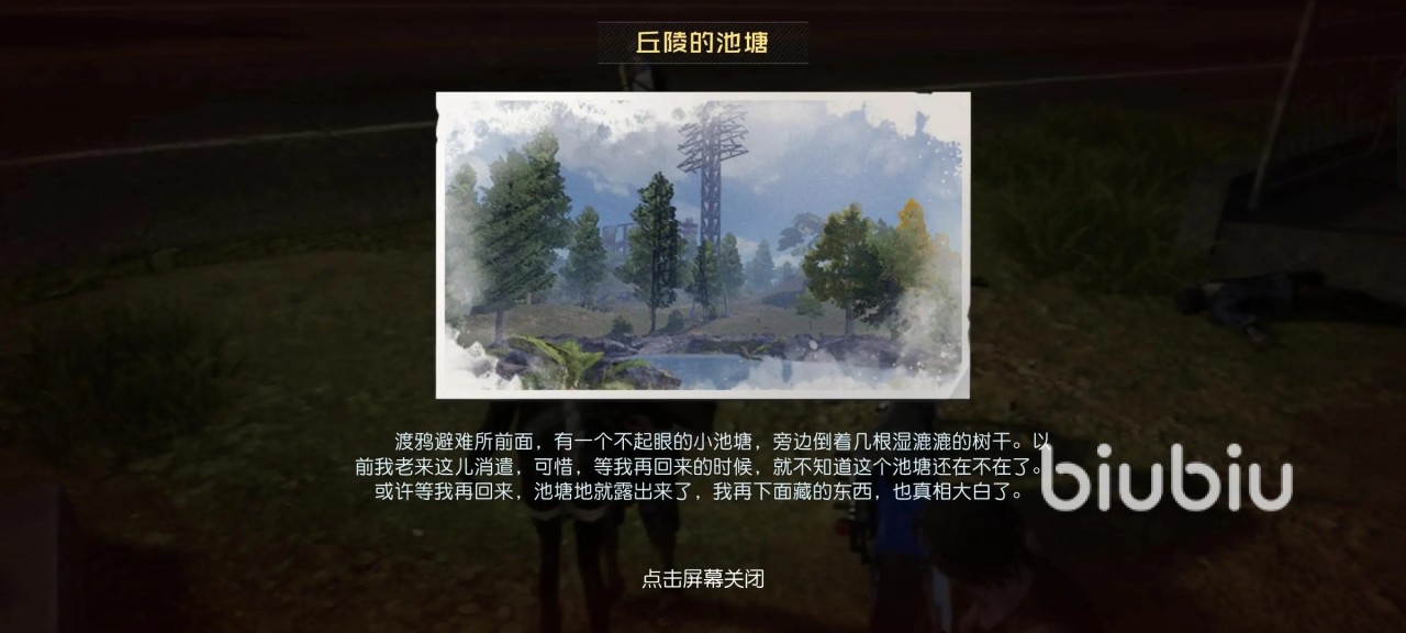 黎明觉醒藏宝图丘陵的池塘不难,不管是任务开始还是任务终点都在渡鸦避难所附近,丘陵池塘也是初期大家会经常采水的地方,应该不那么容易忘。