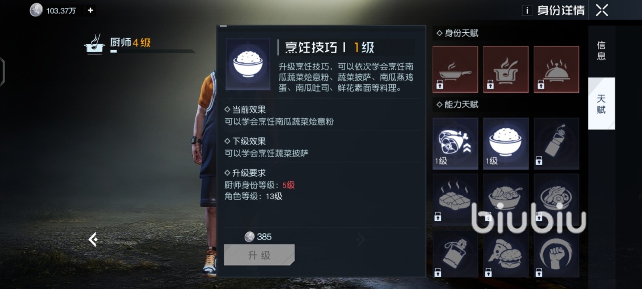 在介绍具体的菜肴之前我们先来看看厨师这个职业,或者说身份。每天通过制作食物最高能得到1650点熟练度,每一次烹饪可以得到33点,一周的上限是8250,制作其实并不麻烦,就是材料收集比较麻烦。当等级来到3/11/21的时候可以解锁烹饪技巧I/II/III。