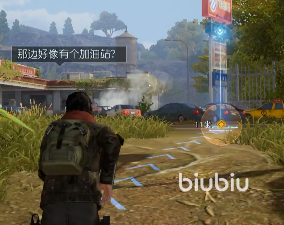 在玩家刚进入游戏时就会自动开始主线剧情,前面的主线剧情大致是引导类型,玩家需要按照指引前往加油站,之后寻找武器,这把武器就是玩家的初始武器了,之后就是战斗指导,玩家需要按照指引完成战斗和物资搜索,之后就是一些列的探索玩法指引,完成这些之后就可以离开出生地了,之后就会来到营地。