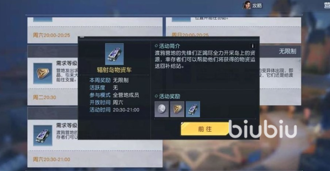 黎明觉醒辐射岛物资车攻略的内容就在上面了,大家可以去游戏中根据上面所介绍的方法去游戏一下哦,一定要记住它的结算时间是在每周日晚上的十点,一定要在该时间之前达到想要完成的目标哦。