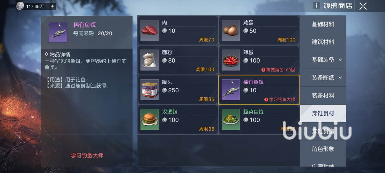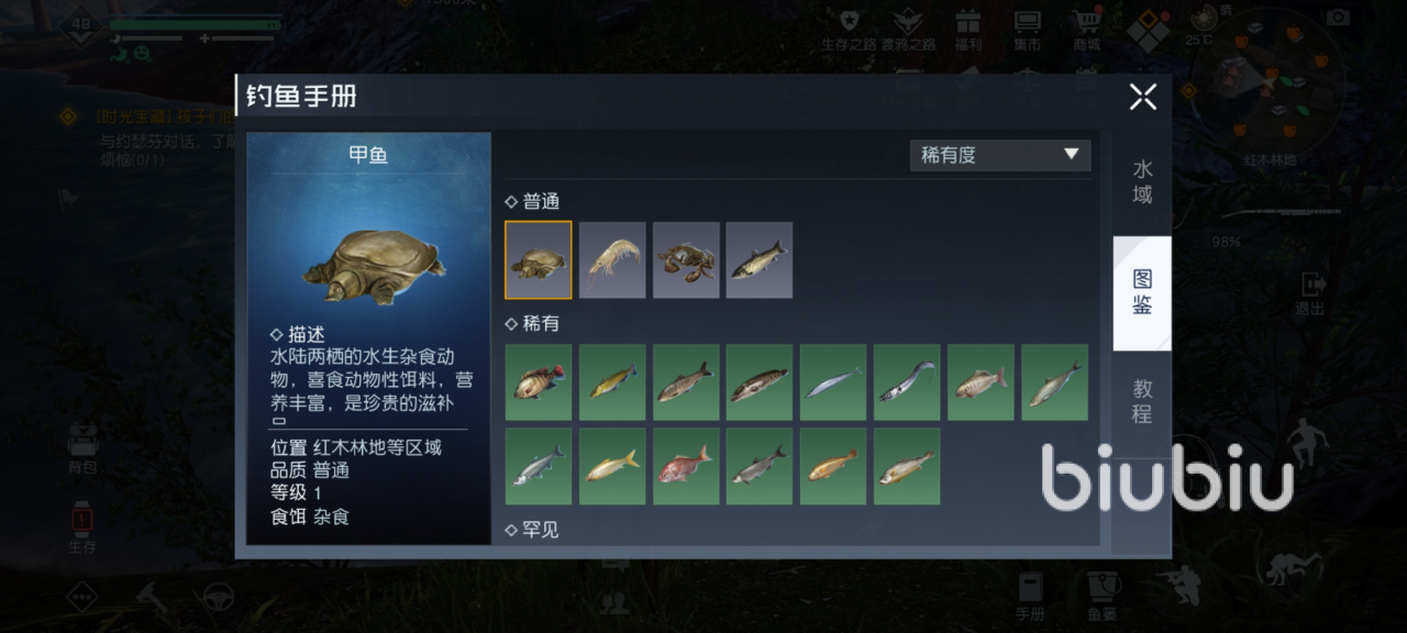 它们可以钓上来的水产品种也是不一样的,后期各位等自己的渔夫等级提升上去之后,便可以获取到更高品质的鱼饵,不过它以每周限购的方式呈现出来。各位如果有指定要钓的鱼,就可以在手册中看它的出没方位以及所需要的饵料是什么类型的。