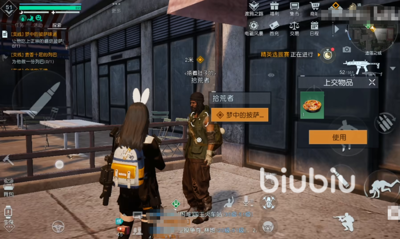 在与拾荒者对话的过程当中,大家需要留意系统标识出来的重要信息,对方会告诉玩家想要吃一个蘑菇披萨,此时各位的任务目标就会更改为制作该食物并交给对方。食物所需的材料大家可以直接在烹饪页面查找,缺少材料的玩家也可以直接出城去探索来获取。