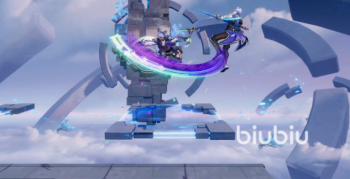 他还有个技能叫做凌厉飞镰,可以朝前位移一段距离。然后甩出镰刀,是个很好用的起手技能,可以出其不意地击飞对手,然后接上其他技能则可快速连招。不过比较适合近身使用,不能远距离攻击。