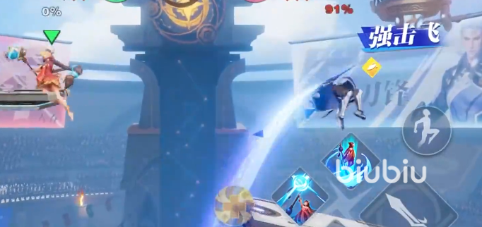 常用连招,可以是冲刺普攻起手,然后接瞬发的猛击或者1技能。也可以上普攻起手将敌人击飞然后继续衔接上普攻最后接空中普攻。大乔的连招并不算多,更多时候大乔就是用的跳跃优势来发动小段连招,打一套就拉开身位寻找机会。