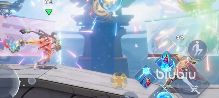 大乔更擅长空中攻击,因为可以连续跳跃4次, 并且每次跳跃还能踩击正下方的敌人,这样就可以打出更多招式。空中普攻法杖敲击身前敌人,空中下滑普攻向着斜下方快速踢击,命中敌人后会再次弹起,当积攒了一定击飞值时,可以连续使用空中下普攻打击敌人。不过需要注意的是连续的空中下普攻之间有间隔,容易被敌人反制,所以接2下之后直接空中普攻收尾就好,不要贪伤害。大乔没有空中上普攻,所以要想有高度优势,就得利用多段跳了。