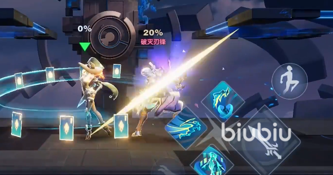 1技能旋转跳跃攻击周围敌人,长按则可以进入隐身状态,同时强化下一次1技能的效果,强化1技能是短距离冲刺突击,命中能打出更高的伤害,这个隐身在1v1的模式里并不是完全隐身,还是能看到大致的行动轨迹,但在多人模式里就很容易被敌人忽视。需要注意的是隐身的时候攻击、防御、闪避、受到攻击都会破隐。所以在隐身的时候一般建议是用跳跃来近身敌人。