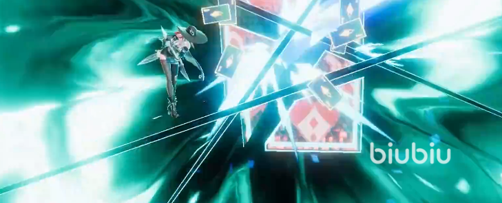 3技能是抛物线式的快速向上跳跃并击飞附近敌人, 如果在上升或者下落的时候命中对手则可以将其束缚同时进入隐身状态,下落的时候可以通过推动摇杆来调整下落轨迹,这样就能更好命中敌人了。3技能触发的隐身会比1技能的隐身要短,所以要尽快使用强化1技能。破晓技则是向四周扩散卡牌,打中敌人后就可以将其拖入魔术领域,进而打出大量伤害,判定范围不算大,但胜在左右都有。一般是先用2技能或者隐身靠近敌人后释放,更容易命中。