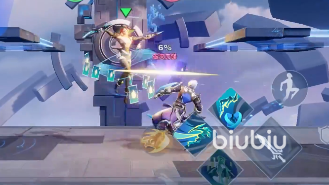 常用冲刺普攻作为先手技,衔接空中普攻。而当敌人离着比较近的时候,也可以先用2技能起手快速抵达敌人背后然后反方向摇杆普攻背刺敌人。在敌人有一定的击飞值后,长按2技能起手命中敌人后接1技能,最后衔接1个空中2技能,然后立刻接3技能将敌人困住,最后通过强化1技能来进行收尾。在有破晓技的时候更是可以打出必杀连招,先长按2技能起手将敌人击飞,然后空中1技能短按再接2技能,最后接上1个破晓技打出满血KO,很是帅气。