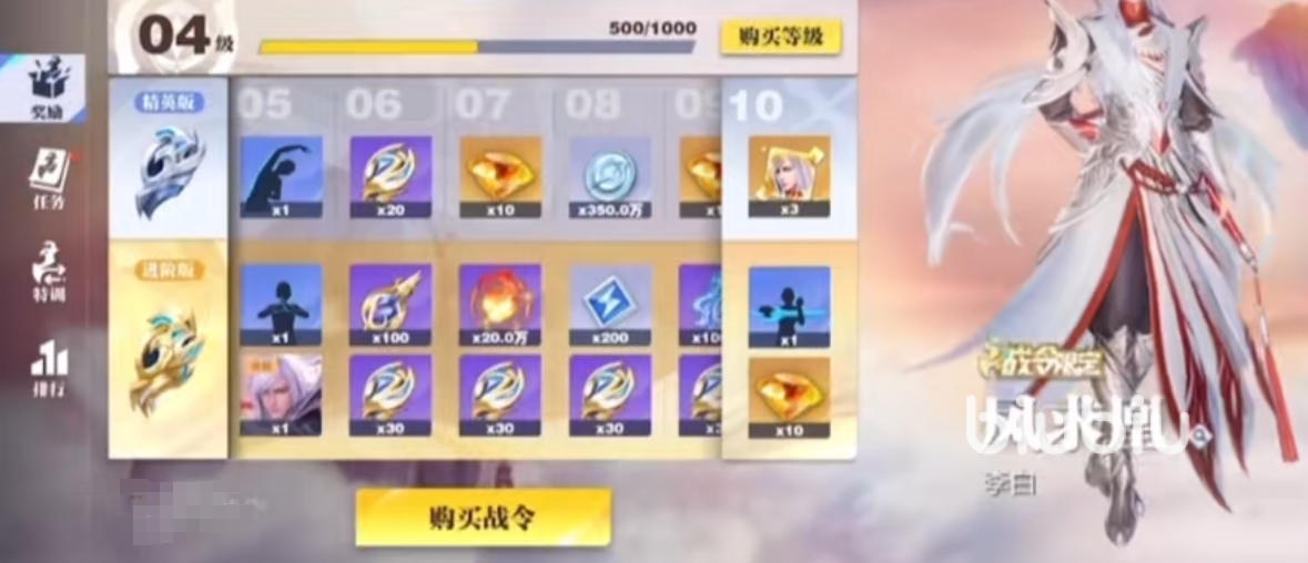 当然,如果你没有时间去做任务或者参与游戏的话。也可以通过购买经验值的方式,迅速提升战令等级。不过一级就需要花费不少钱,所以这种方式虽然是最快的。但是并不划算,对于氪金玩家来说就能在1分钟之内升到满级。