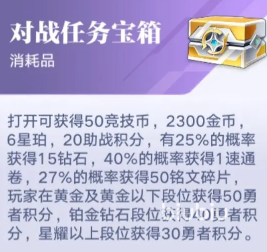 接着就是竞技场任务了,几乎每个玩家每天都是要玩竞技场pk的,这个pk每天也有任务,每天胜利一场便可容易获得60钻石,还有其他三种进阶任务,初级任务需要击败两个英雄,中极则需要连续战胜两个对手,高阶则是需要使用一个英雄累计战胜四名对手,其实难度不算太高,完成以后可以获得3个箱子,一个箱子有小概率获得15钻石,所以就要看玩家运气了。