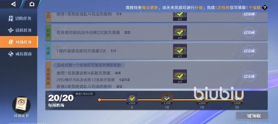 接下来就是每周的竞技场任务,任务内容很简单,一共可以获得600钻石,一周赢十场100钻石,赢十五场200钻石,20场300钻石,大概每天打个几把就能轻松完成所有的竞技周任务。