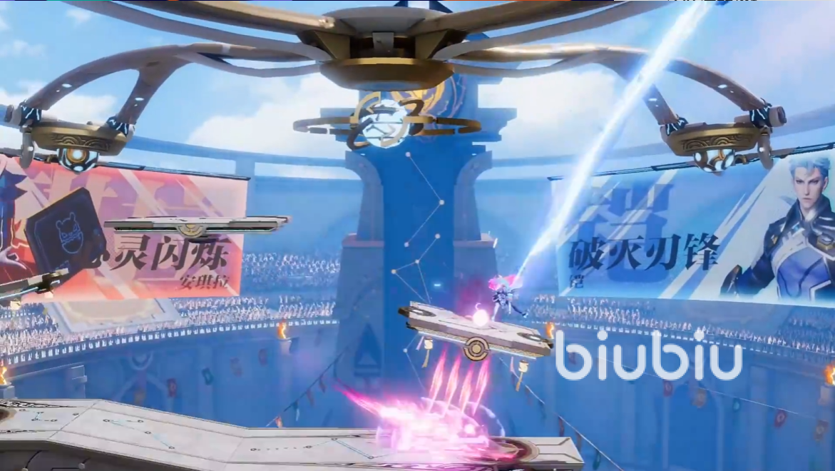 3、下滑普攻键:使用音波攻击砸击地面并击飞对手。在冲刺状态下按普攻键心灵闪烁会向前出进,打出旋转攻击将敌人击飞,这个小幅度的击飞可以让玩家稳定接上连招。