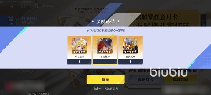 2024年06月17日 14:35 来源:琴叶只金鱼王作为王者旗下的一款横版格斗游戏,让玩家体验不一样的游戏的乐趣,在游戏中为玩家们推出了月卡活动,作为充值月卡的奖励,玩家们能够免费获得一个5星英雄,星之破晓月卡自选哪个强,在月卡自选中玩家可以从推出的5星英雄中任意选择一个,游戏中的英雄最高也才6星,所以在这些免费的5星英雄中玩家可要好好选择下。