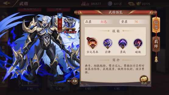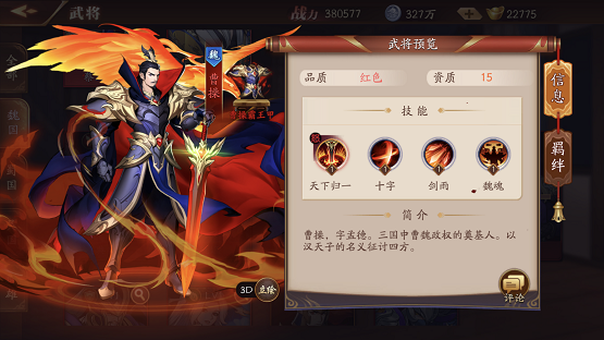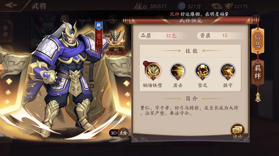 但因为不同玩家收集的武将不同如果没有集齐魏国红将也可以用魏国橙色武将徐晃-于禁替代武将位置也是不错的阵容。