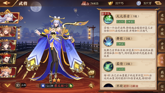 组成阵容建议使用蔡文姬+郭嘉+曹操+甄嬛+典韦阵容,可以最大触发魏晋皇后-对牛弹琴-助丕成王-同窗之情-才貌双全羁绊极大提高了全队的基础属性。