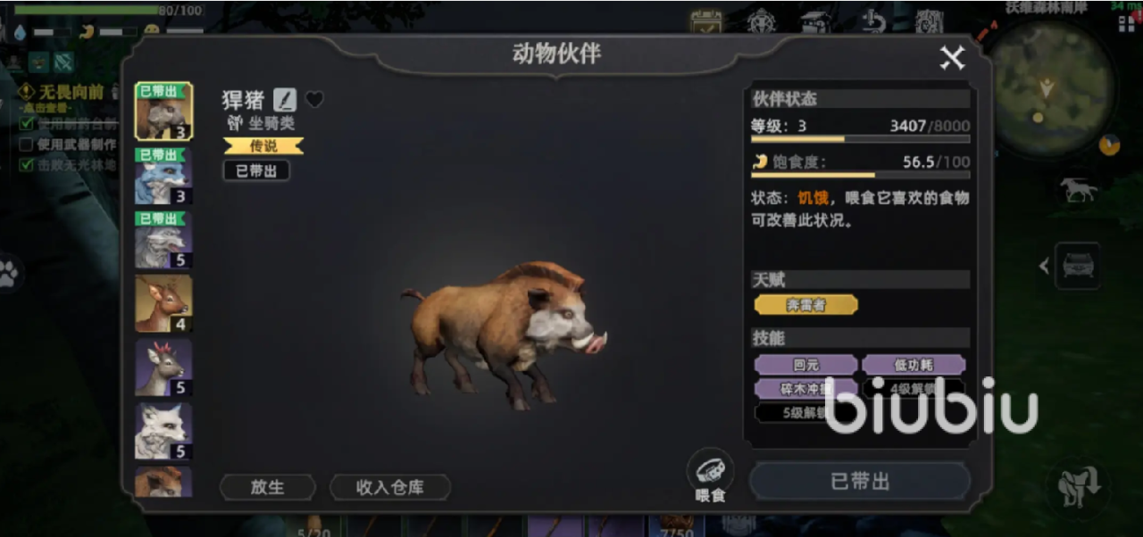 对于新手朋友来说,资源采集类的宠物也是非常有必要获得的,有让大家整体的采集效率都得到提升,从而在前期积累更多的资源。这类宠物首先就非常推荐碎木野猪,它善于对木材尽心采集,能大幅度的提高前期的建设速度。