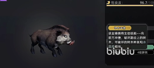 可以说是一个实用性相当高的坐骑了,建议是在进入游戏后就去抓一只,然后利用坐骑技能去挖掘石头或者是金属,这么一来可以加速发育的速度,这就是游戏中猪坐骑的抓捕方法了。