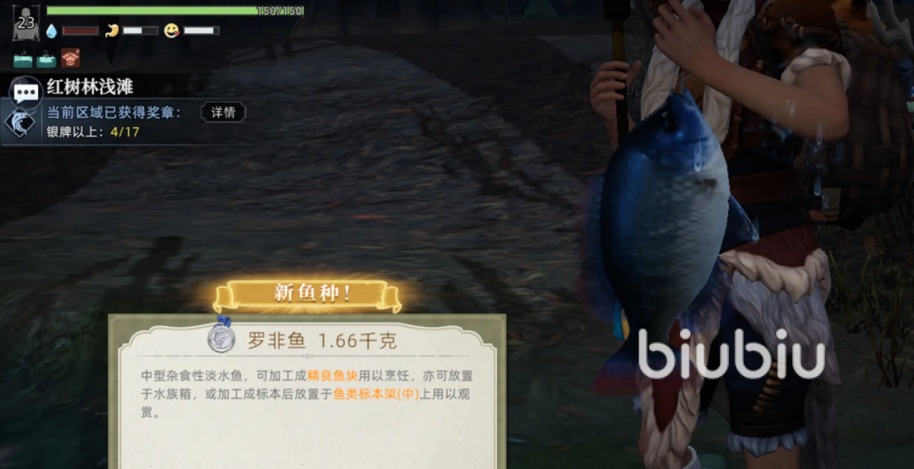 随后找到一片水域,跟着提示来拉线就能收获鱼这一食物,最后的击杀动物手上一定要带有武器,推荐使用弓,若是晚上还需要带好火把,路边动物们的战斗力不会特别高,基本上都能顺利击败。