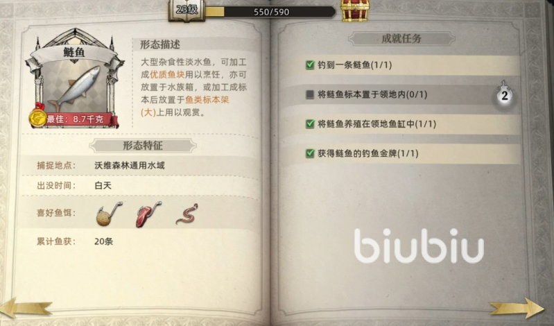 在游戏的休闲玩法上,还可以进行钓鱼。玩家在靠近水域的位置,借助不同的钓饵可以获得不同的鱼类,鱼其实也是制作食物时其中一种食材,鱼类食物即可以是烧烤制成,也可以作为汤类。