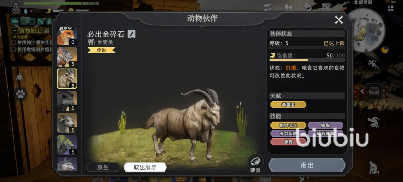 第三个推荐下”山羊”,这也是对采集非常要助益的宠物,主要是擅长采集石材,在矿区或者石头比较多的地方,可快速累积石头,这对前期房屋的防御工事,以及工具制作帮助作用很大,在雪山混沌光球区域就有较大概率捕获。