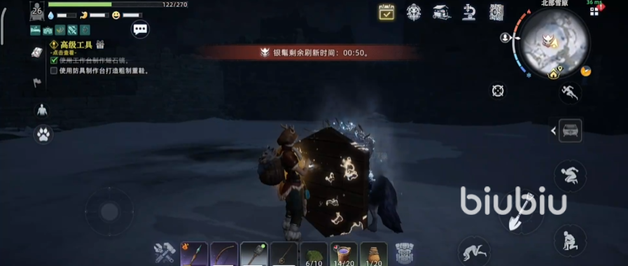 雪山外围这里的奇物获取,需要将银麾这个BOSS给打败才可以,它是一头巨大的银白色雪狼,战斗力非常强大,它不擅长远距离战斗,因此准备好弓箭武器,远程与之作战是比较具有优势的,打败它之后,就能拿到奇物箱子重的”暗影之夜”了。