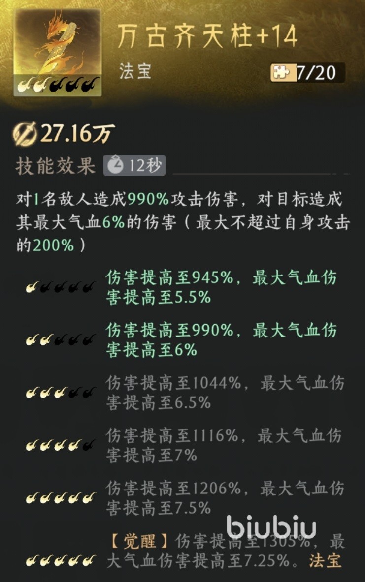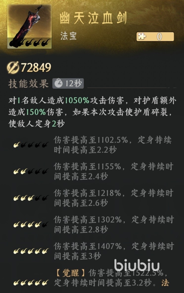 法宝按照功能也分为输出、防御、辅助等不同类型。在输出方面,目前最好的法宝是幽天泣血剑,该法宝的效果是可以对一名敌人造成高额伤害,对护盾有额外伤害加成。如果使用此法宝攻击使护盾破裂,那么还可以使敌人定身2秒钟。这是一款即时操作类型的游戏,对方被定身之后就很难逃脱我方后续攻击,所以是现在攻击最好的法宝。第二个推荐的是万古齐天柱,也是一个攻击型法宝,可对一名敌人造成伤害,并附加6%最大气血的额外输出。这个适合用来打血量比较高的目标,例如各种boss等,附加的额外输出非常可观。