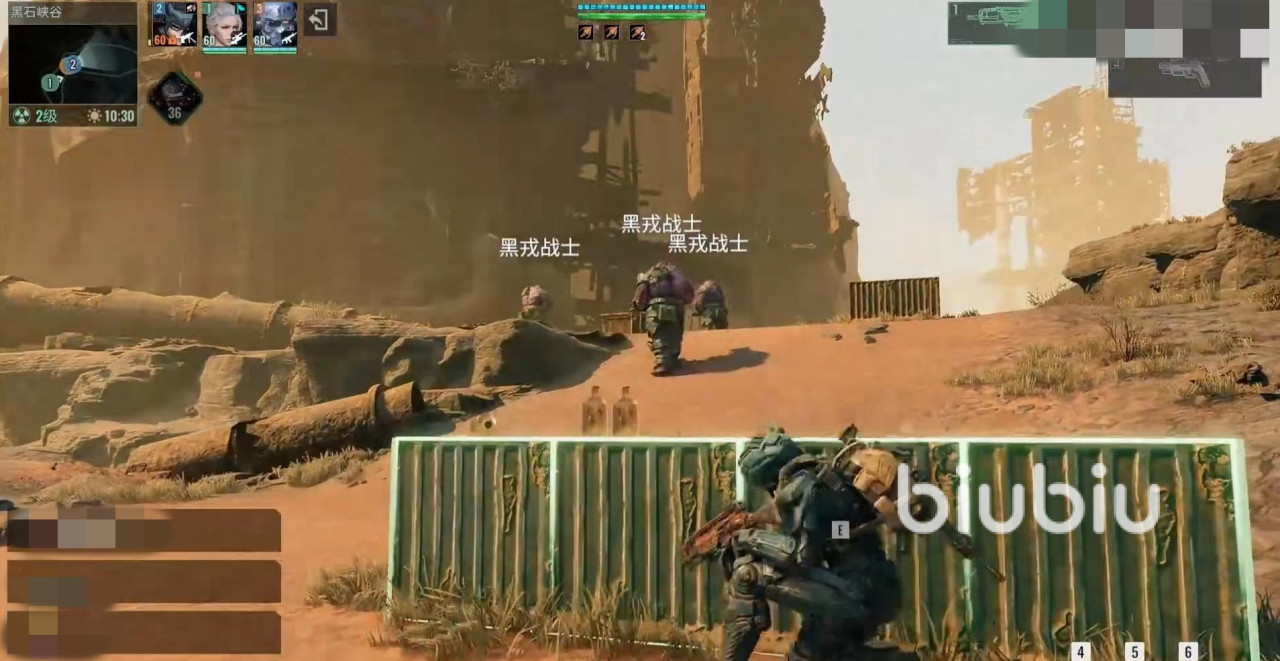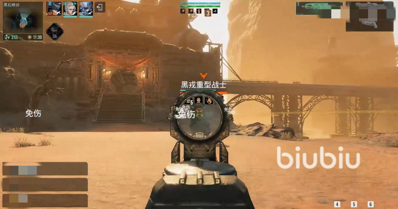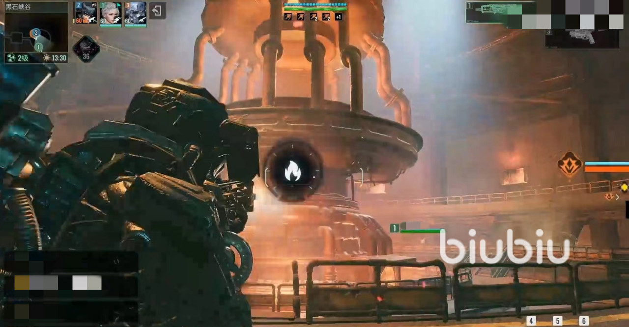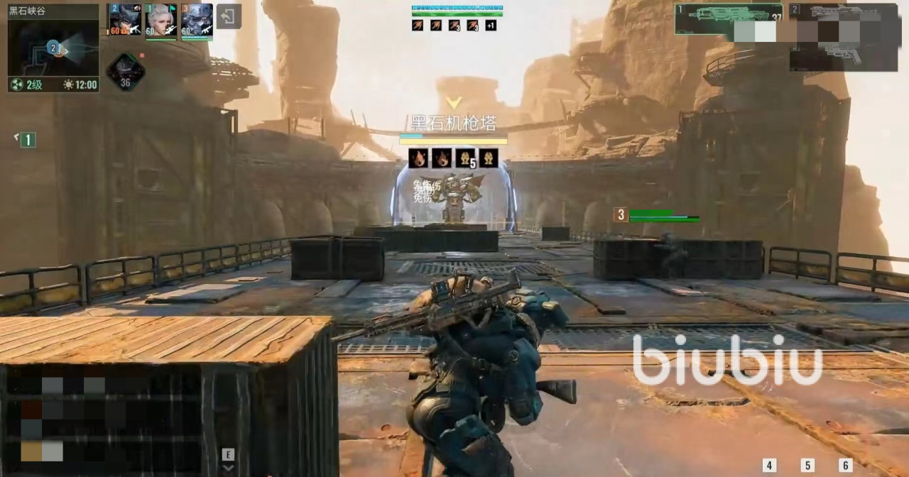 另外注意要和他们保持距离,这些小怪拥有技能还是比较疼的,清理一下前面的小怪后就可以面对一个小boss黑石机枪塔。该机枪塔伤害很高,要注意利用前方各种掩体战斗,面对对方机枪扫射的时候躲避开,利用间隙去输出。机枪还会开启高科技防护盾,处于无敌状态,然后召唤出黑戎火焰战士,这时也要及时清理掉,有护盾的情况下就不要输出机枪了,注意打小怪。如此往复将机枪打掉,就可以继续往前走。