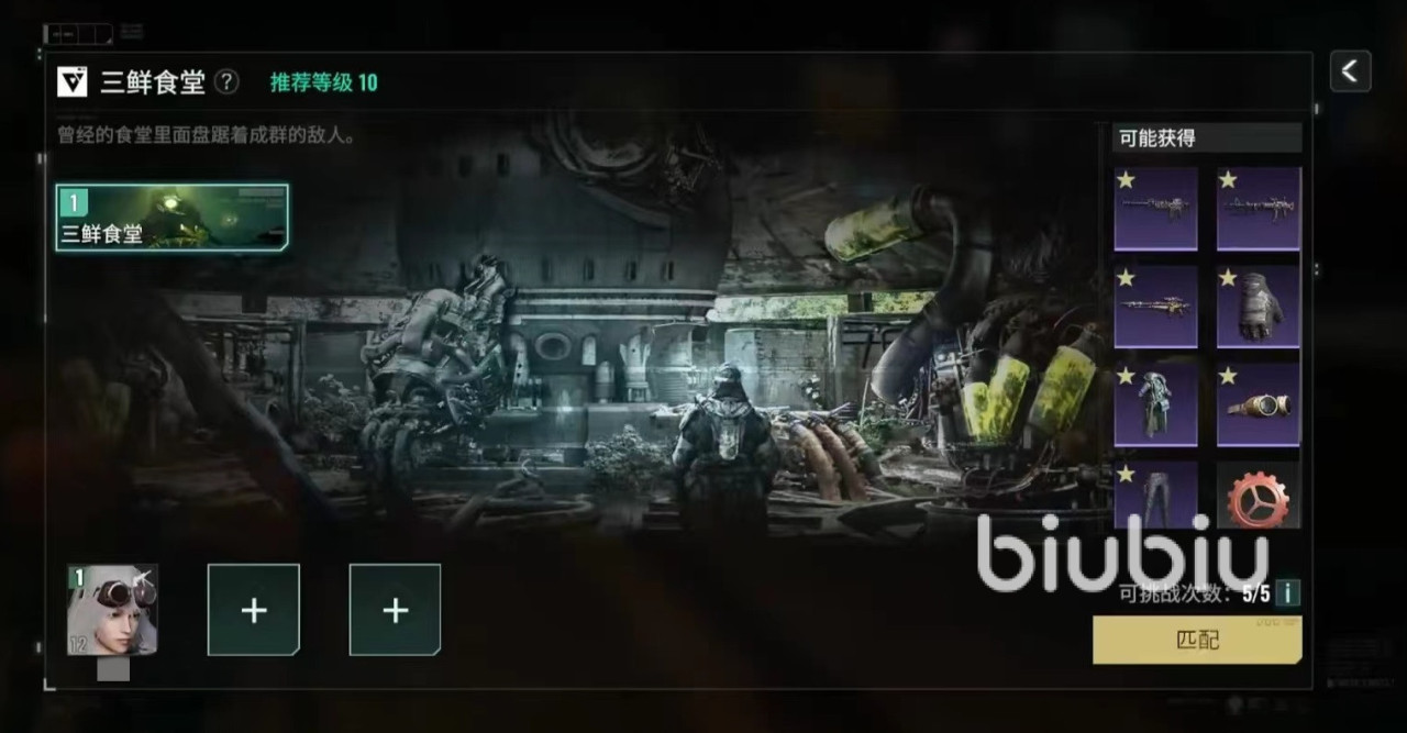 跟随前期的主线,靠近目标地点之后就可以直接触发三鲜食堂,根据推荐等级10级就可以战斗,所以里面的怪物属性绝对不会高。但这也是一个三人副本,需要匹配之后才能加入进来。战斗开始将会遇到一群食堂监工,如果对自己有信心,可以不利用掩体直接扫射清理掉。消灭完毕后继续往前走,将所有的小怪全部清理掉,然后遭遇提取工程师,和他进行战斗。这个工程师体型庞大一些,但依然没有太多技能和战术,直接硬干将他打掉。