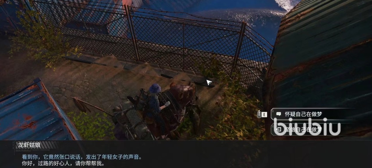 来到码头一个集装箱的后面,靠近铁丝网的位置,就如同小编截图指示的这样,就可以看到一只非常大的龙虾,和龙虾进行互动,龙虾姑娘会给玩家一个任务。接任务之后去边上的仓库里面,和一群偷猎者进行战斗,战斗之后找到龙虾姑娘的项链,然后再回到刚开始的位置,将项链还给她,就可以完成这个支线了。拿到项链之后的龙虾姑娘将会变成人形,给予玩家8000多点经验。这样的奖励还是很可观的,在完成了之后大家可以顺便前往唐湾的夜来香会所,完成另一个支线。