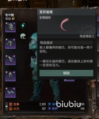 这个物品拿到后,需要给到乔就能拿到这区域的地图,进而解锁该区域就可以前往了,到了以后大家会在区域中看到一种名为变异老鼠的怪物,大家需要击败这怪物,击败后大家会获得几种材料。