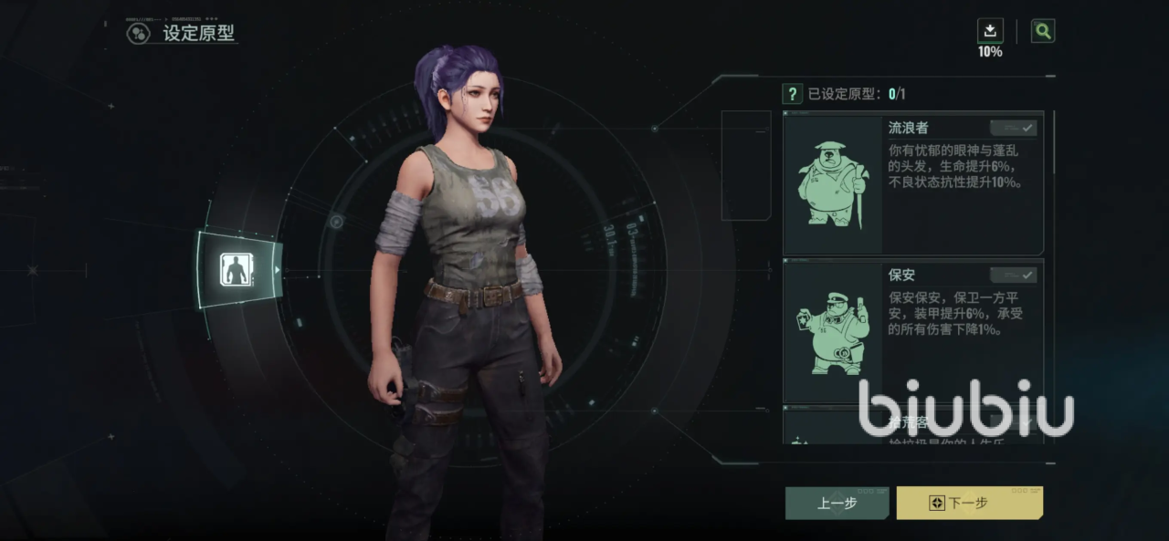 前期想要有体验感,首先得生存下去,所以对于萌新来说,非常推荐使用保安这个原型,毕竟初期的时候对于游戏的方方面面都不了解,而保安这个职业可以直接让护甲的效果提高8%,同时受到的伤害会降低1%,那么就能让角色在场上存活更长的时间,有更好的体验感受,同时也提高了大家的容错。