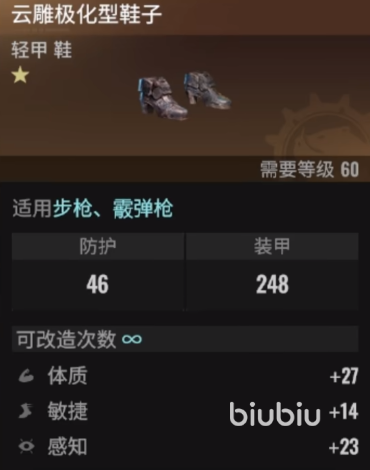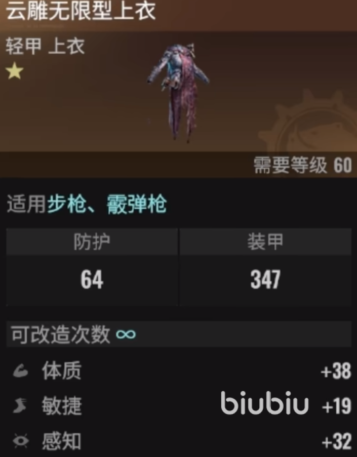 在游戏里面,较为灵活轻甲是不少平民玩家的选择,因为对于平民玩家来说,单纯提升火力并不能对战力产生多大的影响,轻甲对应的是狙击步枪、霰弹枪与半自动,增加的是玩家的感知属性,只要刷防具熟练度,配合云雕套装也能达到不错的实战效果。特别是喜欢玩狙的玩家,云雕极化套装增加爆头伤害,帮你枪枪致命。
