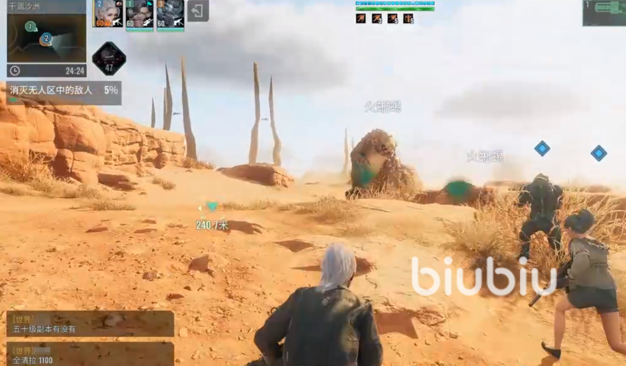 在无人区的团队合作尤为重要,因为刷怪的进度能量条是共享的,其他玩家刷小怪也会累积出boss,打完大boss会出现一分半钟的强制撤离能量进度条,其他还在刷材料的队友也会被强制撤离。建议大家在没有集合之前,不要先打大boss避免坑队友。