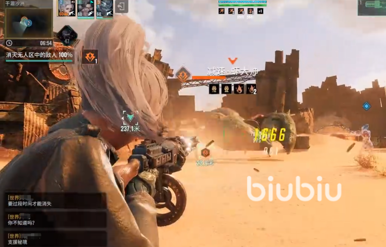 进入无人区pve地图,遇到的怪物有火蜥蜴、投石机器人、恐龙霸主,以及boss精英怪。首先在地图中查看无人区中敌人的数据条,打怪的时候会战机能量条,充满刷出数量1~3个小boss。如果能量条充满到100%,则必刷出一个大boss,标记是红色的图标,底下数字表示刷出的boss数量,同时打掉大boss,还有概率再刷出一个大boss。