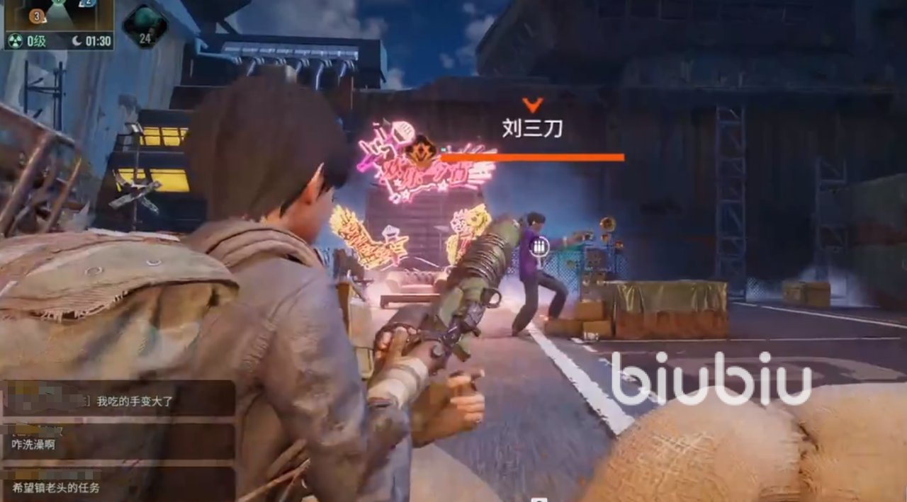 刘三刀是手持两把左轮手枪的boss,攻击有规律比较好躲。战斗前推荐先站位,一名防御较高的玩家站在刘三刀面前的沙包掩体,其余两名玩家爬上梯台,打刘三刀后脑勺输出会更高。