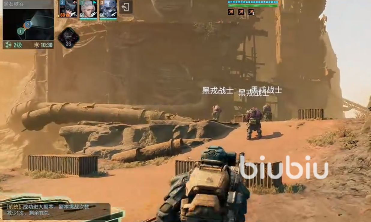 进入副本出生点在黑石峡谷,首先要走地图指的大路清理黑戎部落的战士、以及精锐战士,相对之前的副本难度有所降低,三名玩家各占一个掩体,分散开枪就能轻松过。虽然他们攻击不高,但是黑戎战士有可以倒地复活的特点,各位击倒之后必须前去补刀。